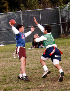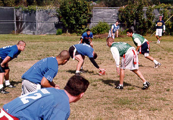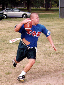 In order to live a balanced life, Sigma Phi Epsilon not only promotes scholarship and leadership among its brothers, it seeks to instill the skills and desire for a healthy lifestyle. Intramurals plays an important role at Loyola. Until recently, the university had no intercollegiate athletic program and intramurals were the only place students could cheer on their team. Even after the university reinstated athletics, competition in the intramural program remained fierce among student organizations both on the main campust and at the Law School. During the 1995-96 academic year the chapter the chapter took second in overall intramural rankings and won both softball and volleyball. In 1996-97 SigEp imporved its position to tran first place overall, taking the titles in swimming and volleyball. In addition to these titles, Louisiana Gamma placed as quarterfinalists in basketball and flag football and semifinalists in soccer and softball. SigEp's intramural program is one of the top 3 at Loyola and has been for 3 years running. SigEp has continually finished near the top in basketball, floor hockey, swimming and golf and are very competive in football, weightlifting, and soccer. SigEp had yet another stellar year in intramural sports in 1998-1999. We were runner up in the men's Loyola All-Intramural Competition. SigEp's best teams were in basketball, flag football, and softball. The basketball team qualified for the playoffs before losing in the third round to the eventual champions. The flag football team, led by Joey Deeb, qualified for the playoffs and defeated Phi Psi if the first round before being eliminated. Softball did its best in years's, qualifying for the playoffs and defeating bitter rival Cobra Cai in the first round. Pitcher J. J. Alcott struck out numerous bewildered batters throughout the season. Floor hockey was led by the number one goalie at Loyola, Dave King, as well as graduating senior J. T. Hannan, who scored the game winning goal against the previously unbeaten Phi Psi team. SigEp is getting closer to and plotting for the great dethronement of ADG, the all-intramural champs for the last eight years. For more information on SigEp Intramurals, |